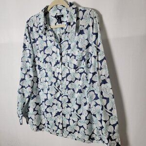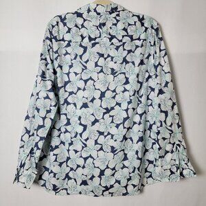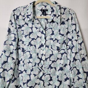 Gap Womens Blue Floral Hawaiian Boyfriend Fit Long Sleeve Button Up Shirt XL