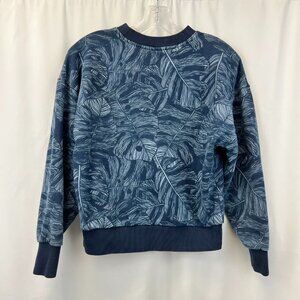 Gap Womens Blue Leaf Print Long Sleeve Crew Neck Pullover Sweatshirt Size XS