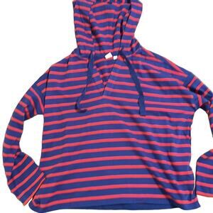 Gap Women’s Boxy Oversized Striped Long Sleeve V-Neck Hoodie Sz L Blue and Red