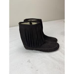 Gap Women's Brown Suede Fringe Moccasin Ankle Boots Boho Western Style Size 7