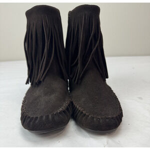 Gap Women's Brown Suede Fringe Moccasin Ankle Boots Boho Western Style Size 7