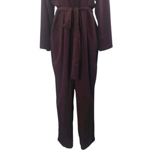 Gap Women's Brown V-neck Long Bell Sleeve V-neck Belted Tapered Jumpsuit Size 16