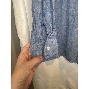 Gap Women’s Chambray Blue Linen Blend Button Down Blouse Top XL Coastal Travel