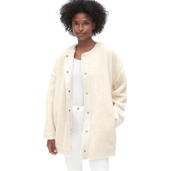 Gap Womens Cream Sherpa Cocoon Jacket MP Teddy Fleece Lined Cozy Fall Winter