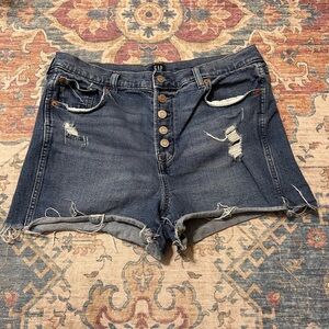 Perfect little distressed denim shorts for summer! Button fly and a 3.5 inseam. High rise. Brand is Gap, size 14