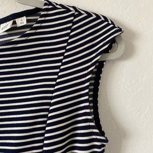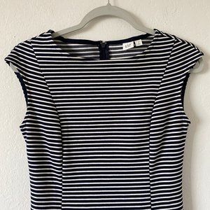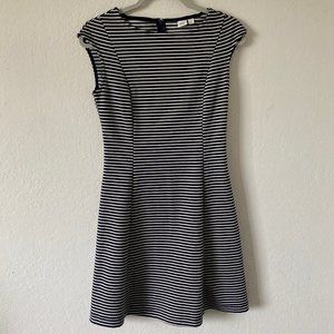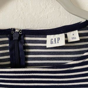 Pre-owned condition. Gap women's size 0 mini fit & flare dress. Cap sleeves. Slight boat neck. Zip up back. Stripe pattern. No holes or stains.