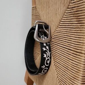 Gap Womens Embroidered Genuine Leather Belt Black with Silver Hardware Size 26
