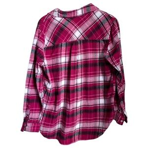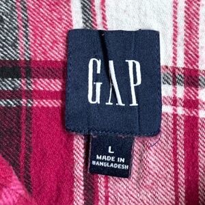 Gap Women's Flannel Shirt Sz Large Pink Black White Long Sleeve Button Down Soft