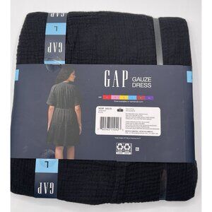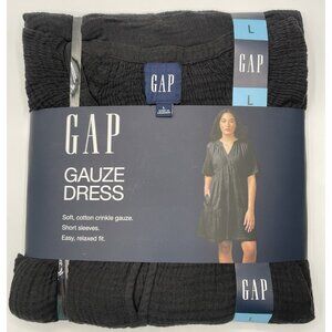 Gap Women's Gauze Tiered Dress Size Large Black Short Sleeve BOHO V Neck