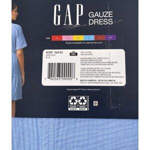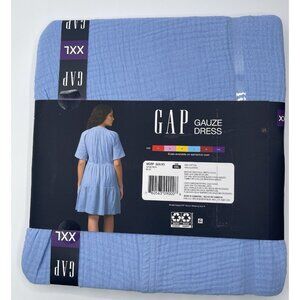 Gap Women's Gauze Tiered Dress Size XXL Blue Short Sleeve BOHO V Neck