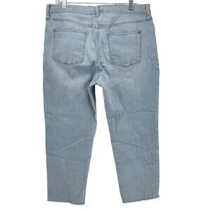 Gap Women's Jeans Girlfriend SZ 14 / 32 Mid Rise Raw Hem Blue Distressed Blue