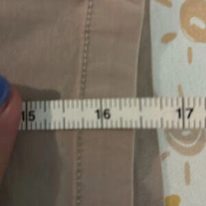 Waist flat is 15” waistband is stretchy. Waist to hemline is almost 16.5”