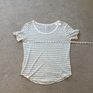 Gap Womens Linen Blend White Black Striped Short Sleeve Scoop Tee Size Small NWT