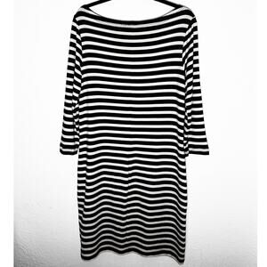 Gap Women's Long Sleeve Striped Boat Neck Shift Mini Dress Black White Stretch