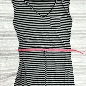 Gap Womens Maxi Striped Dress Sleeveless V Neck Drawstring Waist XS Black Gray
