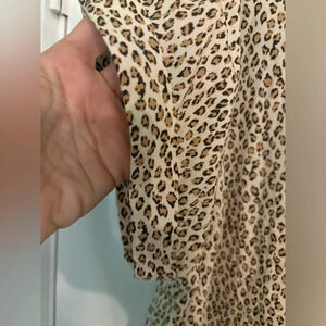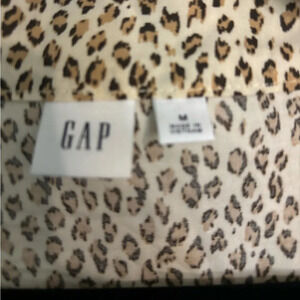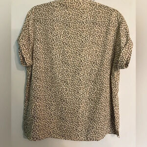 Gap Womens Med Short Rolled Sleeve Leopard Machine Washable Rayon V-neck Blouse