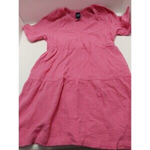 Gap Womens Medium Pink Relaxed Fit Soft Cotton Gauze Tiered Dress. Casual/Dressy