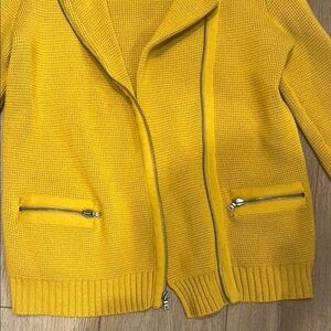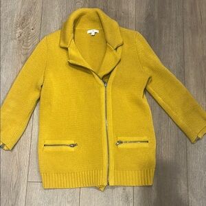 Gap Women’s Mustard Gold Moto Zip Cardigan 3/4 Sleeve Size Small