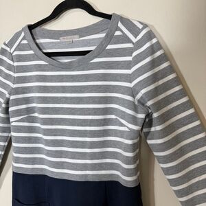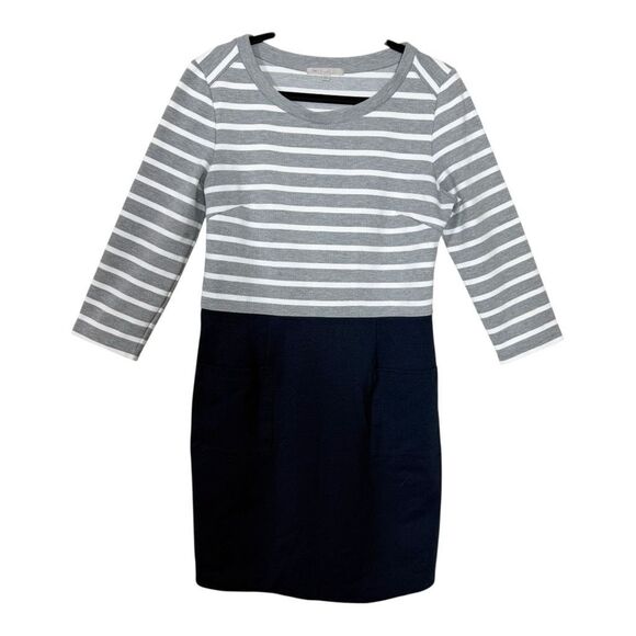 Gap Women’s Navy Gray White Stripe Color Block Pockets Ponte Knit Dress Medium