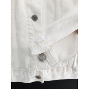 Gap Womens Optic White Denim Jacket Medium Long Sleeved Pockets Classic Y2K