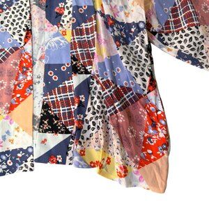 Gap Womens Patchwork Kimono Jacket S/M Open Front Long Sleeves 100% Rayon Multic