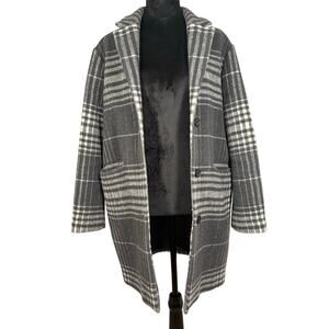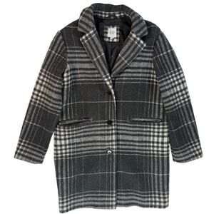 Gap Women's Petite Small Black Gray Plaid Wool Blend Coat 51% Wool, Fully Lined