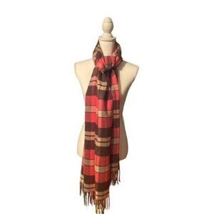 Gap Womens Pink Plaid Scarf Wrap Cabincore Fringe Pink Preppy Academia