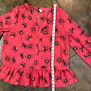 Gap Women’s Pink Poppy V-neck Blouse Size Small