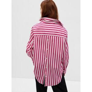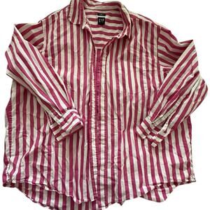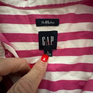 Gap Women's Pink White Striped 100% Organic Cotton the Big Shirt Size Large