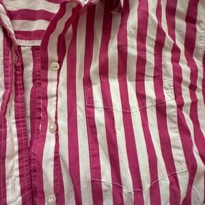 Gap Women's Pink White Striped 100% Organic Cotton Button-Back Shirt Size Large
