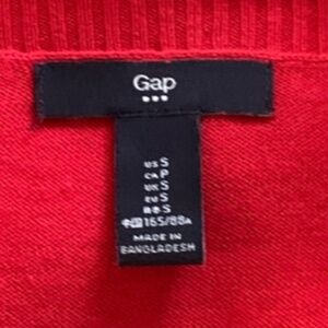 Elevate your winter wardrobe with this stylish and colorful Gap knit top. The oversized and relaxed fit of this red ribbed sleeve sweater exudes a bohemian and peasant vibe, perfect for any casual or business occasion. The round neckline and short sleeves, accentuated with side slits, add a touch of classic and 80s flair. Crafted from a cozy knit fabric, this sweater is perfect for the winter, fall, and spring seasons. The sweater is labeled as a size small and is recommended for hand wash only. The garment care instructions and country of origin, Bangladesh, are included in the details section. Personalize your outfit with this versatile and timeless knit top, perfect for the holiday season.