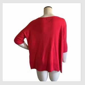 Gap Womens Red Ribbed Sleeve Oversize Boxy Knit Sweater Sz Sm Side Slits #231i
