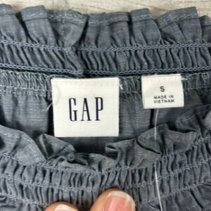 Gap blouse, women’s S blue lightweight top, ruffle collar blouse, Gap women’s clothing, casual boho blouse, new Gap top, versatile everyday blouse, lightweight long sleeve shirt