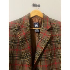 Gap Womens Size Small Wool Plaid Jacket Brown Red Green 3 Button Double Breasted