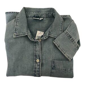 Gap Women’s Small Top Blue Denim Long Sleeve Cropped Button Up Shirt New NWT