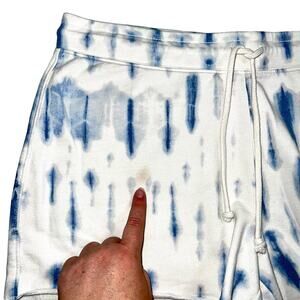Gap Womens Sweat Shorts Tie Dye Blue White Logo Drawstring Casual Comfy Large