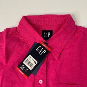 Gap Women's Top XS Linen Blend Button Front Long Sleeve Shirt Pink XS