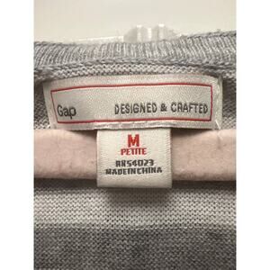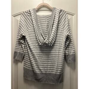 Gap Women’s V Neck Striped Pullover Hooded Sweater Top Size M Petite Gray White
