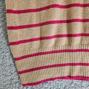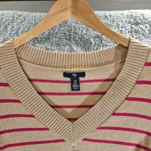 Gap Women's V-Neck Striped Beige & Pink Long Sleeve Sweater XS Soft and Comfy