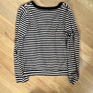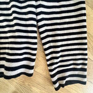 Excellent condition with no signs of wear. Flattering fit in a medium weight. Great for fall. Black and white stripes. Size large