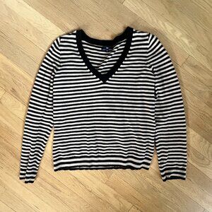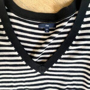 Gap Womens V-Neck Sweater Black White Stripes Sz L