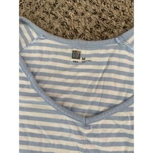Gap Women's White Blue Stripped Quarter Sleeve Top Size Medium