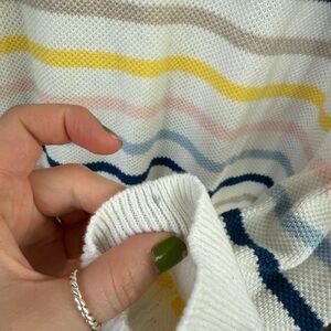 Gap Womens White Stripe Round Neck Pullover Jumper Size Large White Pink Blue