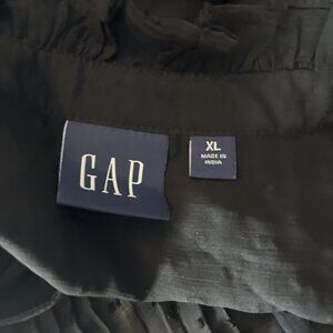 GAP Blouse Womens Size XL. Excellent condition. V-neck, ruffle neck, sheer, long sleeve, flowy. Measurements laying flat: length 26 inches, pit to pit 27 inches.