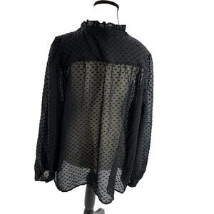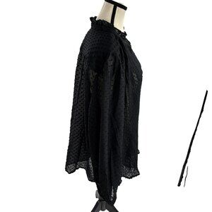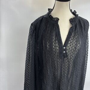 Gap Womens XL Black Sheer Textured Long Sleeve Blouse Ruffle Neck Button Top