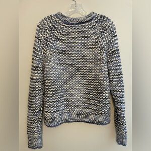 This is a great Gap chunky knit crewneck sweater. Made of 75% acrylic / 25% wool. Beautiful blue and white marled coloring; coloring is most accurately depicted in close up photos. Machine washable. Size is noted as XS so this is oversized. Up to a size Large could wear this if wanted a snugger fit. In great shape.