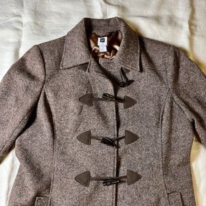 Lovely brown tweed pea coat from Gap. US Women's size XXL. Fully lined. Toggle closure. Slightly fitted with princess seams. Front pockets. Excellent pre-loved condition.
