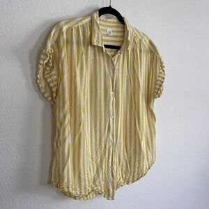 Gap Womens Yellow & White Striped Relaxed Boxy Button Front Shirt Size Large