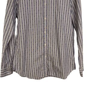 Gap Women's size Medium Tall Blue white silver striped long sleeve button up top