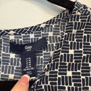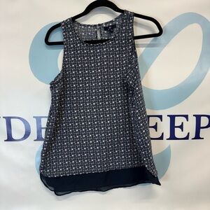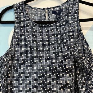 Gap Women’s sleeveless blouse size medium, navy blue, and white, navy blue, sheer waist trip, in excellent condition, smoke, free, and pet free home